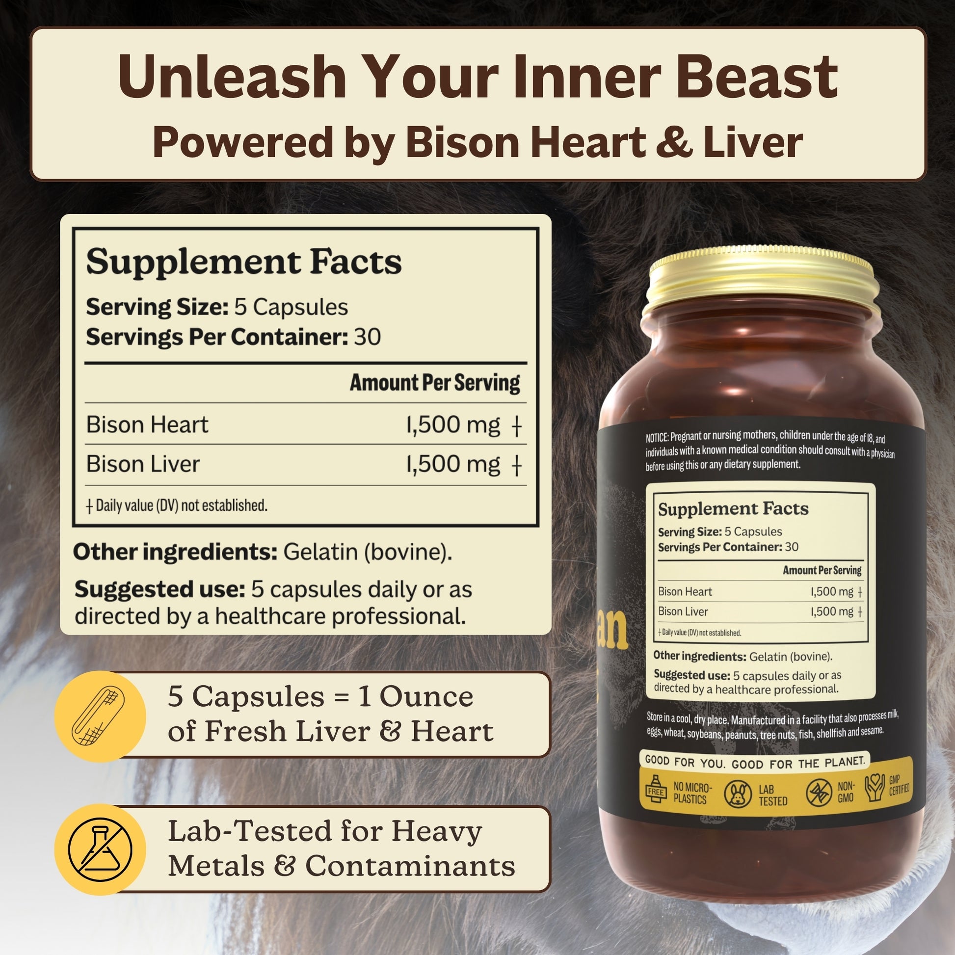 A powerhouse blend of bison liver and heart to fuel strength and stamina.