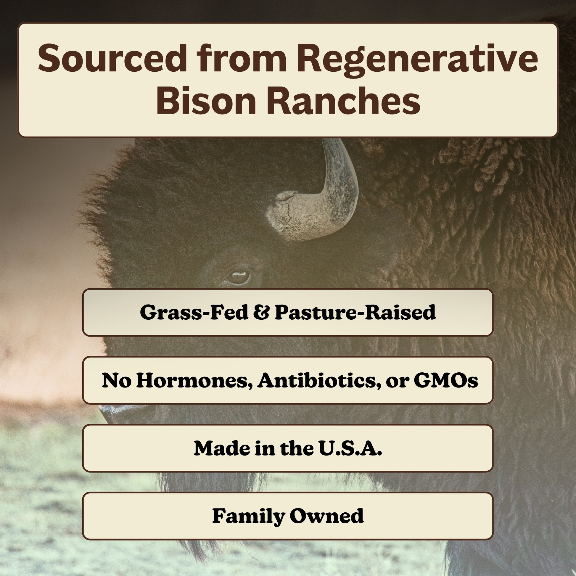 100% pure, additive-free, and sourced from regeneratively raised U.S. bison. No hormones, antibiotics, pesticides or GMOs. Freeze-dried for maximum nutrient retention. American Beast is ancestral nourishment the way nature intended.