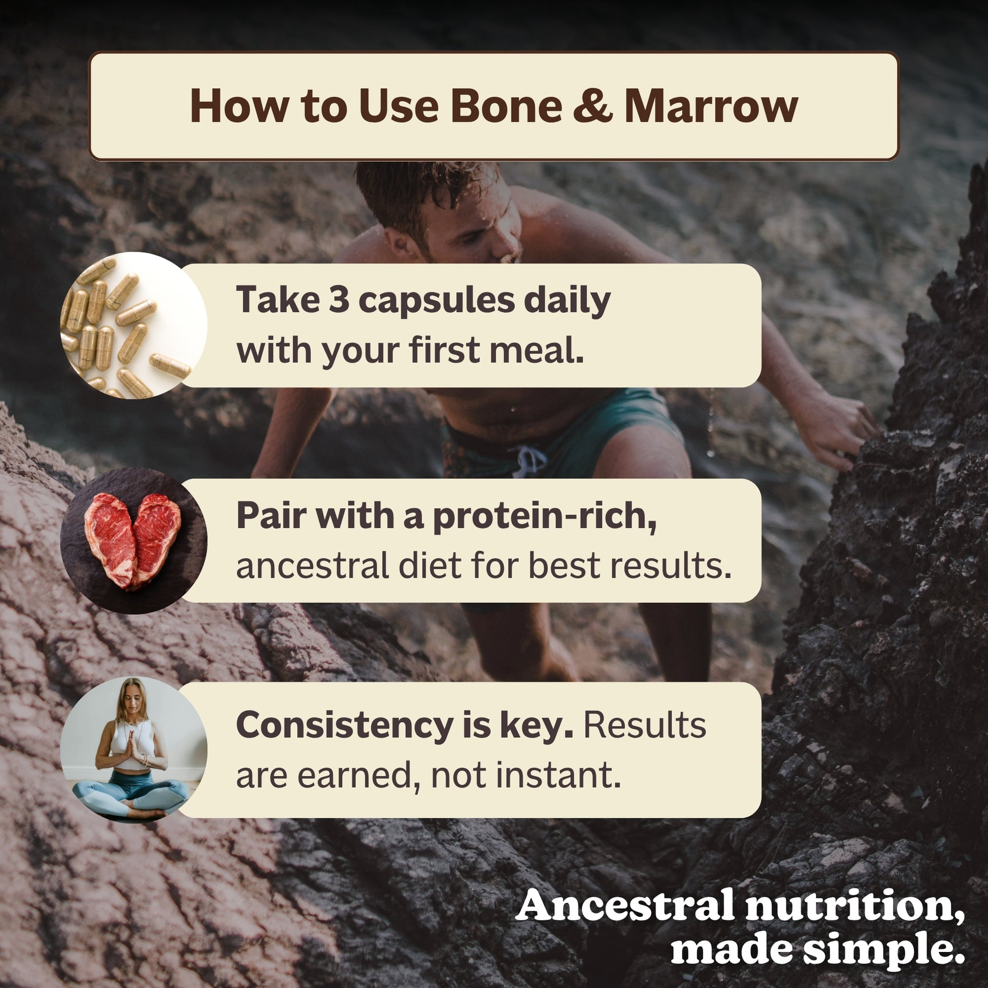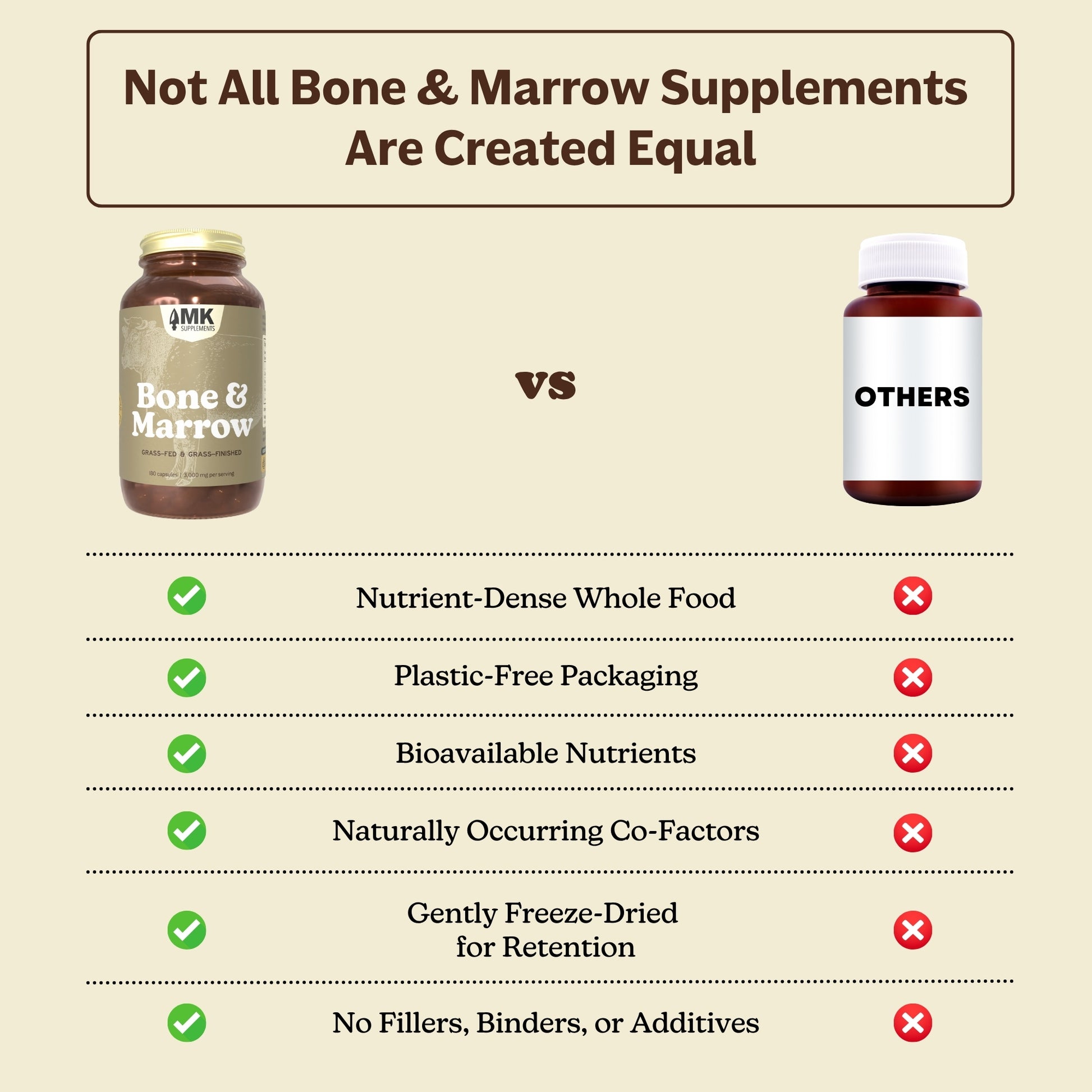In contrast, bone and marrow deliver minerals such as calcium, phosphorus, magnesium, and trace elements bound within a natural matrix of collagen, proteins, and growth factors.