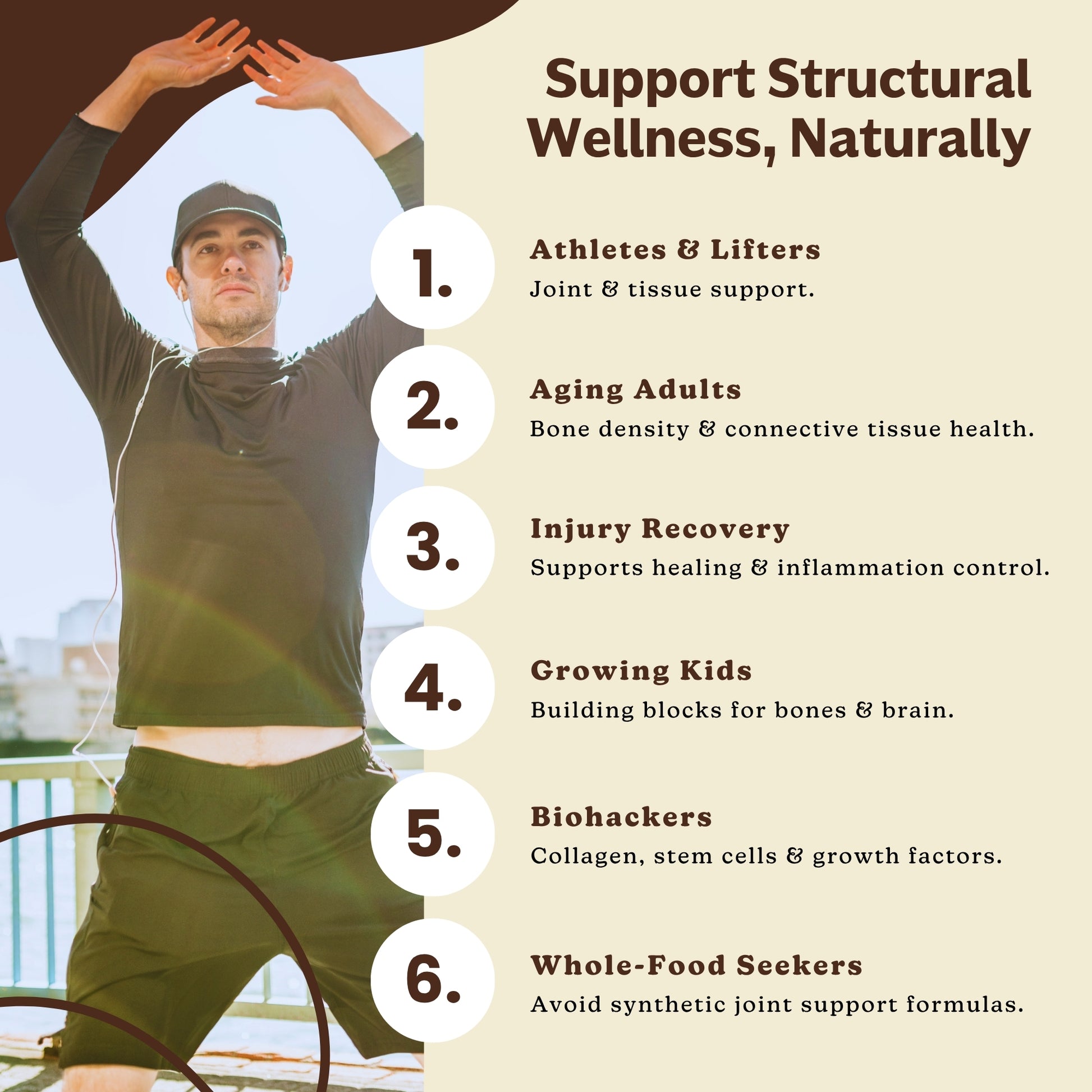 This whole-food form supports bone strength, joint integrity, and connective tissue health in a way that synthetic isolates simply can’t replicate.