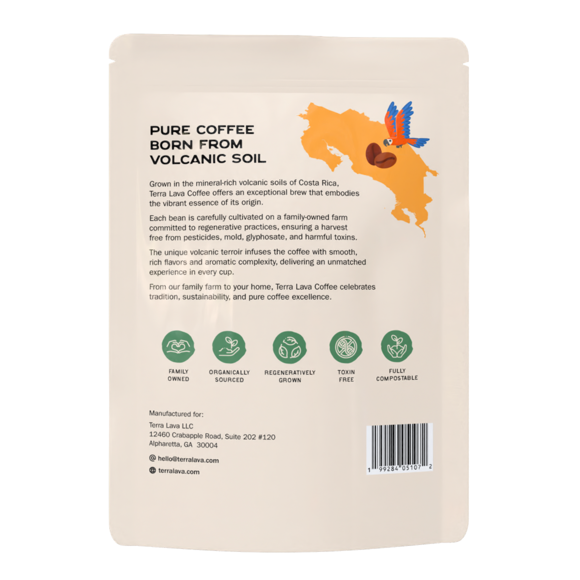Terra Lava is Costa Rican coffee organically grown in volcanic soil without the use of pesticides or chemical fertilizers.