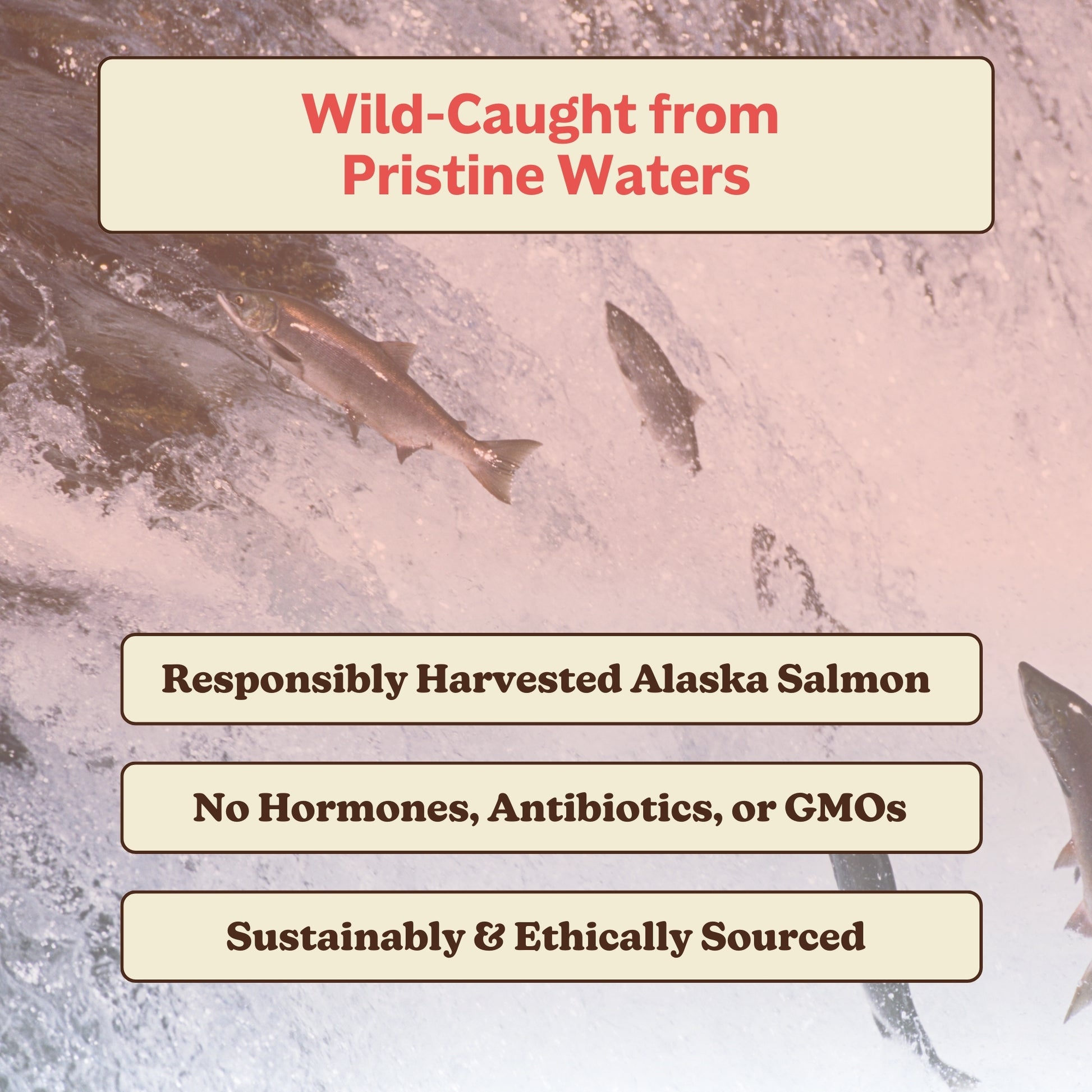 Our salmon oil is sourced from wild-caught Alaskan salmon harvested in cold, clean waters. Alaska has some of the most strictly managed fisheries in the world, helping ensure quality, purity, and long-term sustainability.*