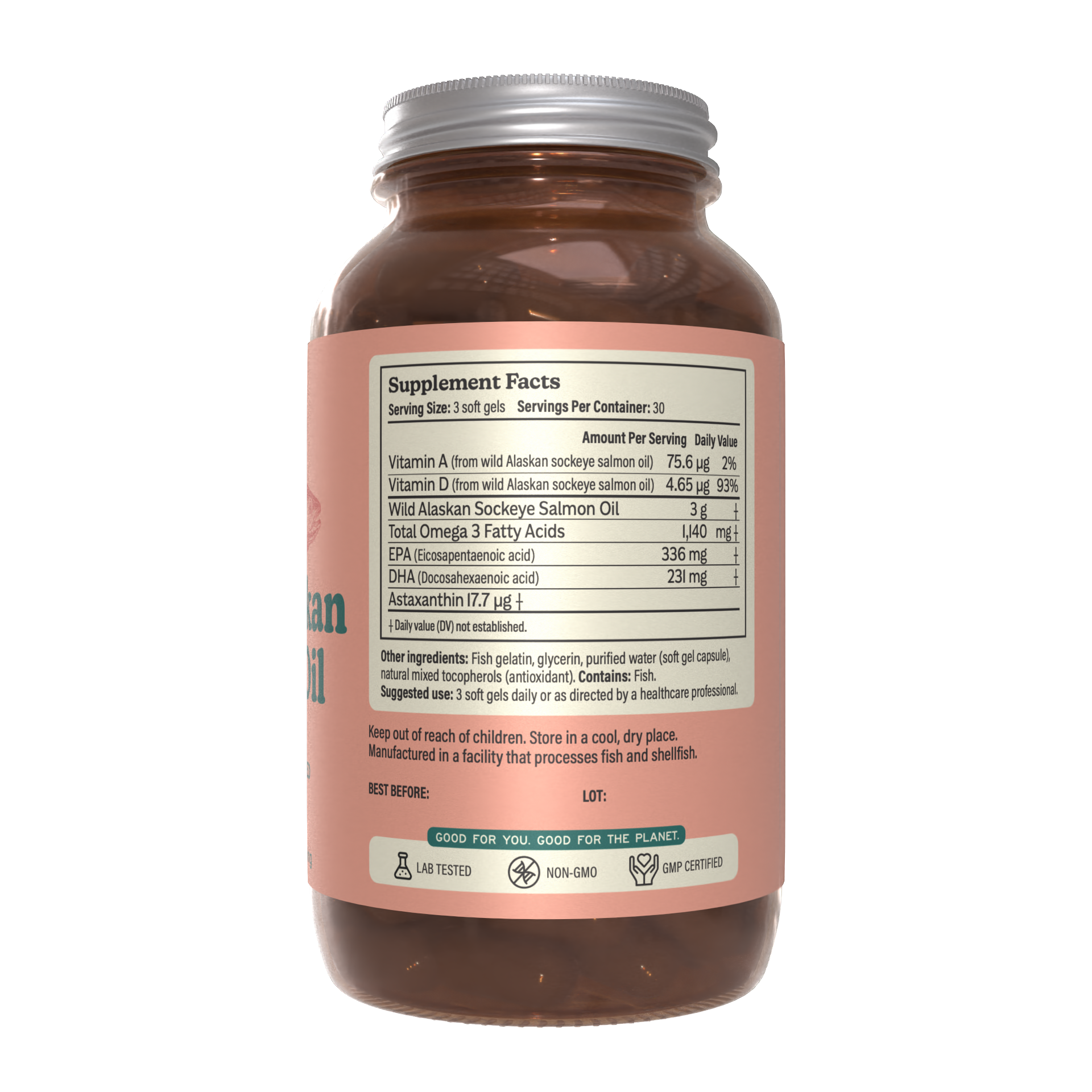 • Wild-caught Alaskan salmon oil (3,000 mg)